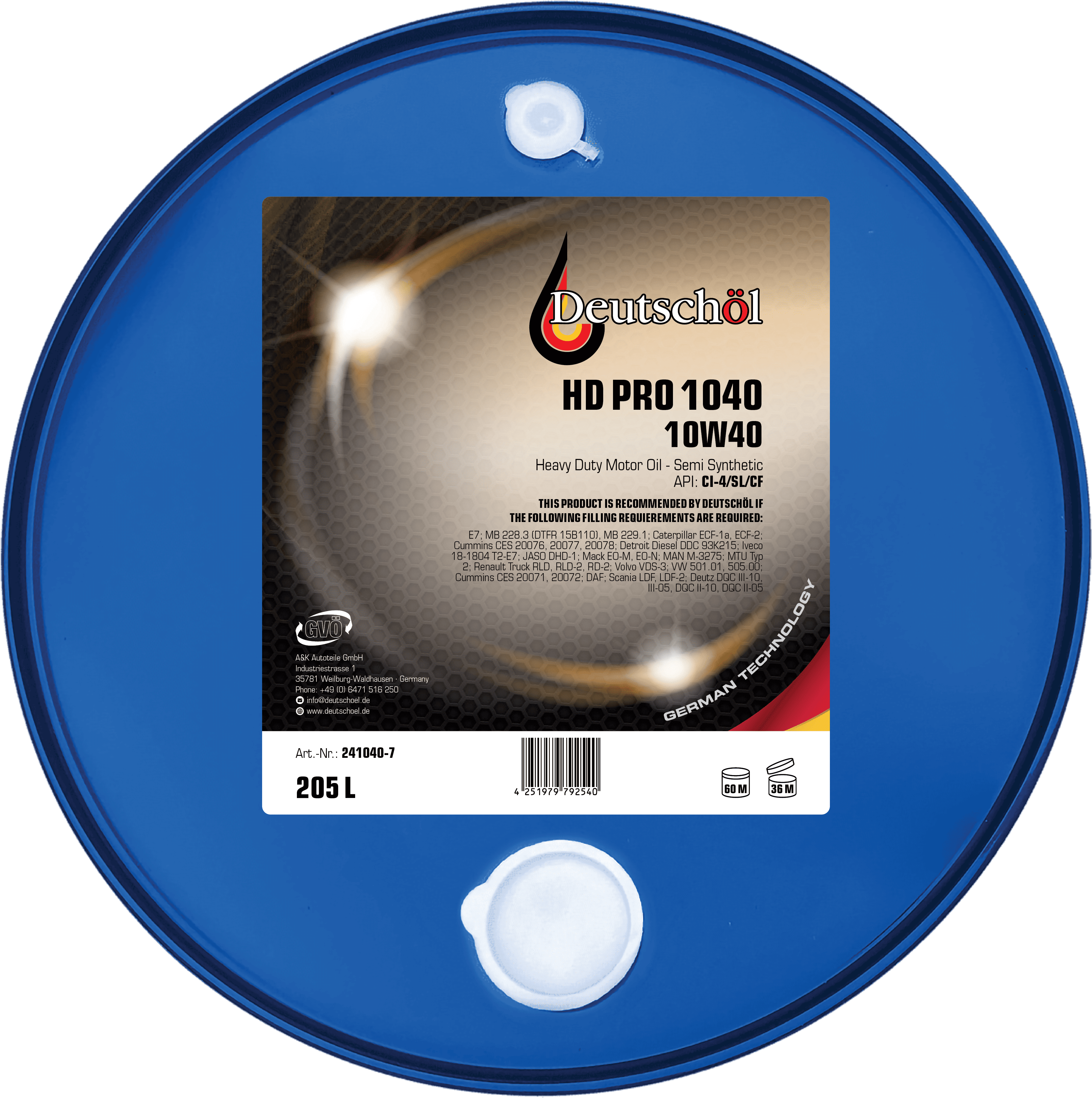 HD PRO 1040 is a highly additivated, semi-synthetic truck engine oil for use in highly contaminated, naturally aspirated and turbo diesel engines of classes Euro I, II, III and IV. Can also be used in passenger car diesel engines. Suitable for diesel fuels with a sulfur content of up to 0.05% by weight.